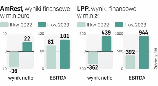 Wyraźnie lepiej niż rok wcześniej, jak i na tle poprzedniego kwartału wypadł AmRest. Uwagę zwraca znacząca poprawa rentowności restauracyjnego biznesu. – Ostatnie trzy lata nie były łatwe dla AmRestu. Najpierw pandemia uniemożliwiła spółce normalne funkcjonowanie, co doprowadziło do spadku przychodów i utraty rentowności, później wybuch wojny w Ukrainie zmusił do wycofania się z rynku rosyjskiego. O ile w I kwartale 2023 r. AmRest wciąż nie powrócił do dawnych wyników, o tyle w II kwartale sytuacja uległa znacznej poprawie – zauważa Łukasz Bryl, analityk DM Banku BPS.