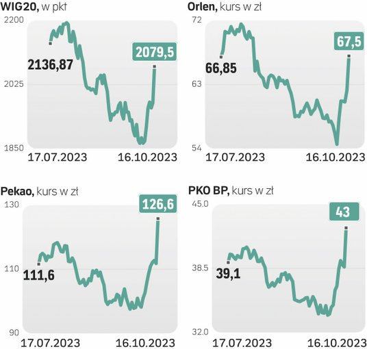 I najwyraźniej mocno na to liczą. Ich oczekiwania dobrze oddaje przebieg poniedziałkowej sesji w Warszawie. – Mieliśmy zdecydowane wzrosty w segmencie największych firm. Pojawia się bowiem szansa na zmniejszenie niepewności i spadek upolitycznienia decyzji spółek z największym udziałem Skarbu Państwa. To może poprawić długoterminowe postrzeganie polskiego rynku, który jest relatywnie tani. Odetchnąć powinien też sektor bankowy – wyjaśnia Rafał Sadoch, analityk BM mBanku.
