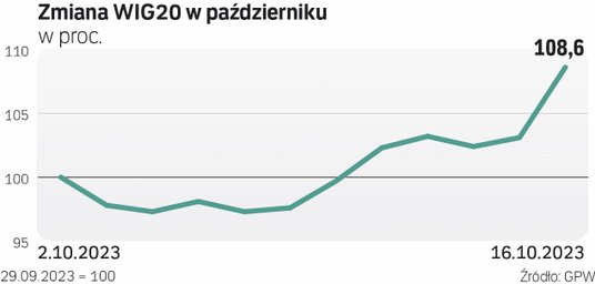 Po wyjątkowo silnych zwyżkach w poniedziałek również wtorek był udanym dniem dla inwestorów. Znów zyskiwały akcje i waluta. Układ w WIG20 był już nieco inny – WIG-banki po 10-proc. umocnieniu pierwszego dnia tygodnia był stabilny, natomiast na czele indeksu dużych spółek plasowało się PGE. Sam WIG20 w ciągu dnia zyskiwał, dochodząc nawet do 2150 pkt, tj. miejsca, w którym poprzednio był na początku sierpnia. W dwa dni WIG20 wzbił się o 7 proc. Czy wraz z nowym układem sił na scenie politycznej nastawienie inwestorów do spółek z udziałem Skarbu Państwa, które są dużą częścią WIG20, może się trwale zmienić?