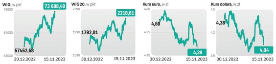 Wyraźną poprawę i zmianę nastawienia do polskiego rynku widać od czasu wyborów parlamentarnych w Polsce. Ich wynik był pierwszym jednoznacznym sygnałem do zwiększania zaangażowania w polskie akcje, w szczególności dla inwestorów zagranicznych. Dość wspomnieć, że podczas powyborczej sesji WIG20 zyskał ponad 5 proc. W tym tygodniu doszedł kolejny element rynkowej układanki, czyli dane dotyczące inflacji w Stanach Zjednoczonych, która okazała się niższa od prognoz, a to oznacza, że więcej podwyżek stóp tam już raczej nie będzie. W bycze tony uderzają eksperci. – Różne wykorzystane przez nas metody plasują następny cykliczny szczyt WIG w przedziale od około 80 tys. do około 89 tys. pkt w wariantach konserwatywnych, czyli przy założeniu, że WIG będzie się zachowywał raczej tak jak po 2009 r., a nie w latach 2003–2007 – to drugie oznaczałoby dużo bardziej optymistyczne scenariusze – wskazywał ostatnio Tomasz Hońdo z Quercus TFI.