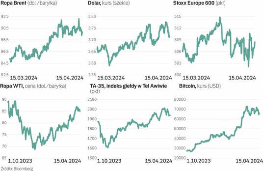 Reakcje na atak rakietowo-dronowy Iranu na Izrael były na rynkach lekko nerwowe, ale bardzo dalekie od paniki. Świadczyły o tym choćby notowania ropy. Cena gatunku Brent spadała w poniedziałek rano o 0,6 proc. i zeszła lekko poniżej poziomu 90 USD za baryłkę. Ropa gatunku WTI taniała wówczas o 0,8 proc., a jej baryłka kosztowała 85 USD.