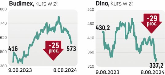 Wśród spółek, które wypadły z łask, jest Dino, które na przestrzeni kilku ostatnich lat może się pochwalić trzycyfrową stopą zwrotu z akcji. W tym roku rynek nie jest już tak entuzjastycznie nastawiony do spółki w porównaniu z czasami, gdy kurs ustanawiał historyczne rekordy. Ma to m.in. związek z coraz trudniejszym rynkiem i rosnącą presją kosztów, co negatywnie przekłada się na wyniki sprzedaży porównywalnej oraz marże. W takich warunkach właścicielowi sieci supermarketów będzie trudno utrzymać efektowne tempo wzrostu zysków, co w przeszłości było jednym z głównych argumentów przemawiających za spółką.