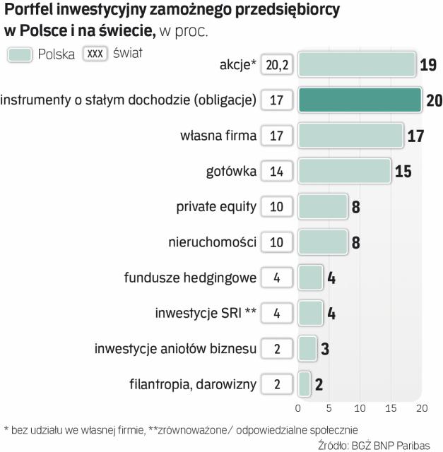 Jak zwracają uwagę eksperci BNP Paribas, po raz pierwszy w pięcioletniej historii badania instrumentem najczęściej wybieranym przez przedsiębiorców okazały się akcje. Właściciele firm odnoszących sukcesy rynkowe ulokowali w nich ponad jedną piątą majątków.