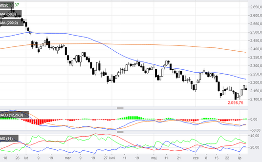 Wracając do sesji - jej druga połowa przyniosła kolejną falę sprzedaży, w efekcie której WIG20 nie tylko oddał wzrostowy dorobek z pierwszej fazy sesji, ale zszedł nawet na nowe, dzienne minima. Ostatecznie indeksu dużych spółek zakończył czwartek spadkiem o 1,2 proc. do 2156 pkt. Na wykresie widoczna jest świeca z małym, ciemnym korpusem i długim górnym cieniem. Zgodnie z japońskim podręcznikiem analizy technicznej jest to tzw. formacja spadającej gwiazdy, który niestety zapowiada pogłębienie przeceny. Zwłaszcza, że umiejscowiona jest na szczycie kilkudniowej korekty wzrostowej. Patrząc więc na wykres z szerszej perspektywy bardziej prawdopodobna wydaje się kontynuacja głównego trendu, co oznacza zejście do dołków w rejonie 2100 pkt. Co gorsza podobna sytuacja dotyczy także mWIG40. Mimo chwilowego wyjścia nad kreską, indeks finiszował na minusie, a jego dzienna świeca ma długi, górny cień. Analiza techniczna sugeruje więc, że to by było na tyle w temacie odreagowania spadków. I choć coraz trudniej znaleźć na rynku spółkę, która idzie pod prąd rynkowych nastrojów, to w czwartek było kilka wyróżniających się firm. Mowa m. in. o CD Projekcie, którego kurs akcji rósł nawet o 8,2 proc. do 180,9 zł, wyznaczając nowe, historyczne maksimum.
