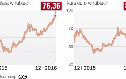 Za dolara płacono we wtorek nawet 76,5 rubla. Za 1 euro nawet 83 ruble, czyli najwięcej od grudnia 2014 r. Spadające ceny ropy uderzają w rosyjski budżet.