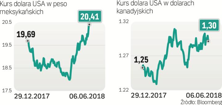 Peso meksykańskie stało się najsłabsze wobec dolara od lutego 2017 r. Od początku tygodnia straciło ponad 2 proc. do amerykańskiej waluty, a od początku roku 3,5 proc. W środę po południu za 1 USD płacono nawet 20,48 peso. To reakcja inwestorów na problemy w negocjacjach dotyczących zmian w układzie NAFTA (o strefie wolnego handlu pomiędzy USA, Kanadą i Meksykiem). Coraz więcej wskazuje, że nie uda się zakończyć tych negocjacji w tym roku.