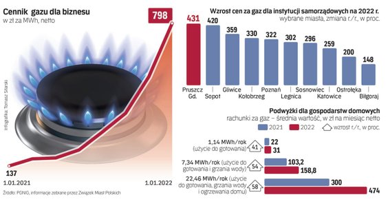 Średnio o 174 zł miesięcznie netto, czyli o ponad 2 tys. zł rocznie, wzrosną tegoroczne rachunki za ogrzanie domu gazem i podgrzewanie wody – wynika z wyliczeń Urzędu Regulacji Energetyki. To o 58 proc. więcej niż w 2021 r. Rachunki za „gazowe" ciepło w mieszkaniach będą niższe niż w domach, ale i tak podniosą się o ponad połowę.