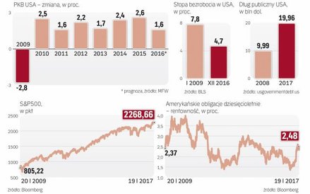 Niewątpliwym sukcesem administracji było wyprowadzenie na prostą wielkich amerykańskich banków, a także szybkie wyciągnięcie USA z recesji. O ile amerykański PKB spadł w 2009 r. o 2,8 proc., to według szacunków MFW, w 2016 r. wzrósł o 1,6 proc. I choć wzrost gospodarczy jest daleki od przedkryzysowego tempa, to i tak USA należą do krajów dojrzałych, które najszybciej się rozwijają.