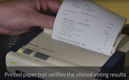 Na poniższym wideo widać jak z użyciem uprzednio spreparowanej karty można łatwo wgrać nowe oprogramowanie do maszyny do głosowania. Potencjalny napastnik może zmodyfikować w ten sposób nie tylko nazwę komisji wyborczej, czy liczbę oddanych głosów, ale nawet dane osobowe kandydatów biorących udział w wyborach.