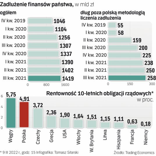 Z projektu wynika też, że Fundusz Pomocy ma być finansowany m.in. z wpłat z budżetu i innych jednostek publicznych, ze źródeł zagranicznych oraz emisji obligacji BGK. Głównym jego dysponentem ma być premier. – Taka konstrukcja jest powieleniem złych pomysłów rządu od wybuchu pandemii – ocenia Sławomir Dudek, główny ekonomista Fundacji FOR. Warto przypomnieć tu przede wszystkim wielomiliardowy Fundusz Przeciwdziałania Covid-19, który też jest całkowicie wyłączony z parlamentarnej kontroli, nie zalicza się do zadłużenia państwa wedle polskiej definicji, a o jego przeznaczeniu decyduje w zasadzie Kancelaria Premiera.