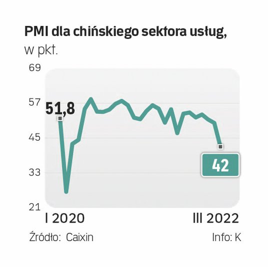 O tym, jak mocno te ograniczenia zaczynają wpływać na gospodarkę, świadczą choćby publikowane w ostatnich dniach odczyty mierzących koniunkturę indeksów PMI. Wskaźnik PMI dla chińskiego sektora usług, liczony przez firmę Caixin, spadł z 50,2 pkt w lutym do 42 pkt w marcu. Każdy jego odczyt poniżej 50 pkt wskazuje na kurczenie się sektora, a dane za marzec są mocno recesyjne. Marcowy spadek usługowego chińskiego PMI był najszybszy od lutego 2020 r., czyli od czasu lockdownu w mieście Wuhan.