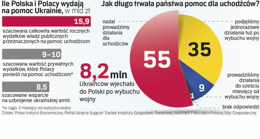 Wedle ostrożnych szacunków polskie wsparcie dla Ukraińców i Ukrainy może mieć wartość nawet 40 mld zł. 15,9 mld zł z tego to pomoc publiczna. Na 9–10 mld zł szacowane jest prywatne wsparcie tylko w trzech pierwszych miesiącach po wybuchu wojny. Do dziś ta kwota urosła o kolejnych kilka miliardów. Pomoc wojskowa to co najmniej 8,5 mld zł. A przecież pieniądze to nie wszystko.
