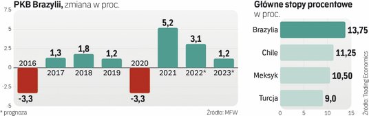 Jak na razie Lula nie podjął żadnych działań ograniczających niezależność banku centralnego. Niepewność co do jego polityki przyczyniła się jednak do umiarkowanego osłabienia reala brazylijskiego. O ile w czwartek za 1 dol. płacono 4,96 reala, o tyle we wtorek po południu – 5,15 reala. Kurs był jednak i tak o 1,5 proc. niższy niż na początku roku. Również brazylijski rynek akcji radził sobie w ostatnich tygodniach wyraźniej gorzej w porównaniu z innymi giełdami regionu i ogólnie rynkami wschodzącymi. Od początku roku do wtorkowego otwarcia sesji stracił prawie 1 proc., podczas gdy meksykański indeks IPC wzrósł w tym czasie o 11,5 proc., a polski WIG 20 zyskał ponad 4 proc.