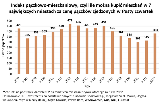 Załóżmy jednak, że statystyczny Polak porzuci 2-3 jakichkolwiek pączki, a zadowoli się jednym, ale takim zrobionym z sercem – z wysokiej jakości składników na bazie tradycyjnej receptury. To oznaczałoby, że w ciągu dzisiejszego dnia przeznaczymy na pączki ponad 176 mln złotych. Mówimy tu o równowartość 381 dwupokojowych mieszkań w największych miastach w Polsce.
