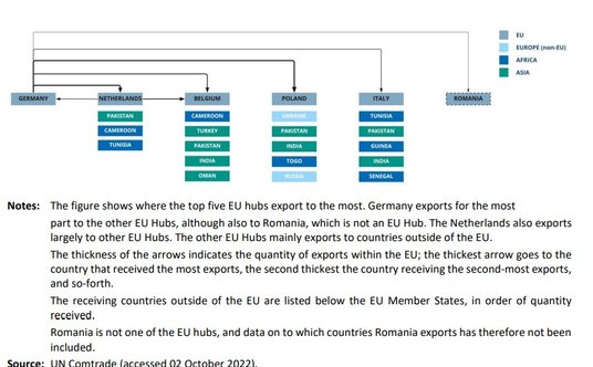 Ilość używanych tekstyliów eksportowanych z UE potroiła się z 550 tys. ton w 2000 do 1,7 mln ton w 2019. Średnio daje to około 3,8 kg na osobę i stanowi 25 proc. tekstyliów zużywanych w Europie każdego roku. Głównymi odbiorcami zużytych tekstyliów są kraje Afryki (46 proc. eksportu w 2019) i Azji (41 proc. w 2019). Istnieją jednak znaczące różnice w tym co dzieje się z tekstyliami na rynkach afrykańskich i azjatyckich.