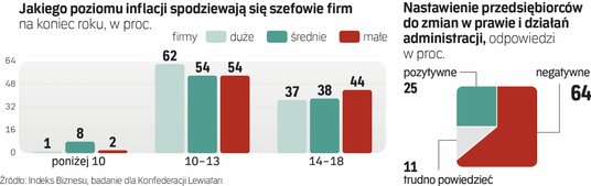 Większość przedsiębiorców (64 proc.) ma negatywne nastawienie do zmian prawnych i działań administracji. Największymi pesymistami są szefowie firm średnich. Trzech na czterech obawia się działań administracji. W przypadku 65 proc. niepokój przenosi się również na przewidywania dotyczące rozwoju firmy. – Wydaje się rozsądne, że przedsiębiorców bardziej niepokoi to, na co nie mają wpływu – tłumaczy prof. Jan Garlicki, socjolog z UW i dyrektor Centrum Badań Marketingowych Indicator. Ta firma przeprowadziła kwietniowe badanie opinii przedsiębiorców „Indeks Biznesu” dla Konfederacji Lewiatan. Największy pesymizm prezentują szefowie małych firm: – One zwykle mają już wyższe koszty działalności niż mali przedsiębiorcy, nie zawsze mają ustabilizowaną pozycję na rynku – mówi prof. Garlicki.