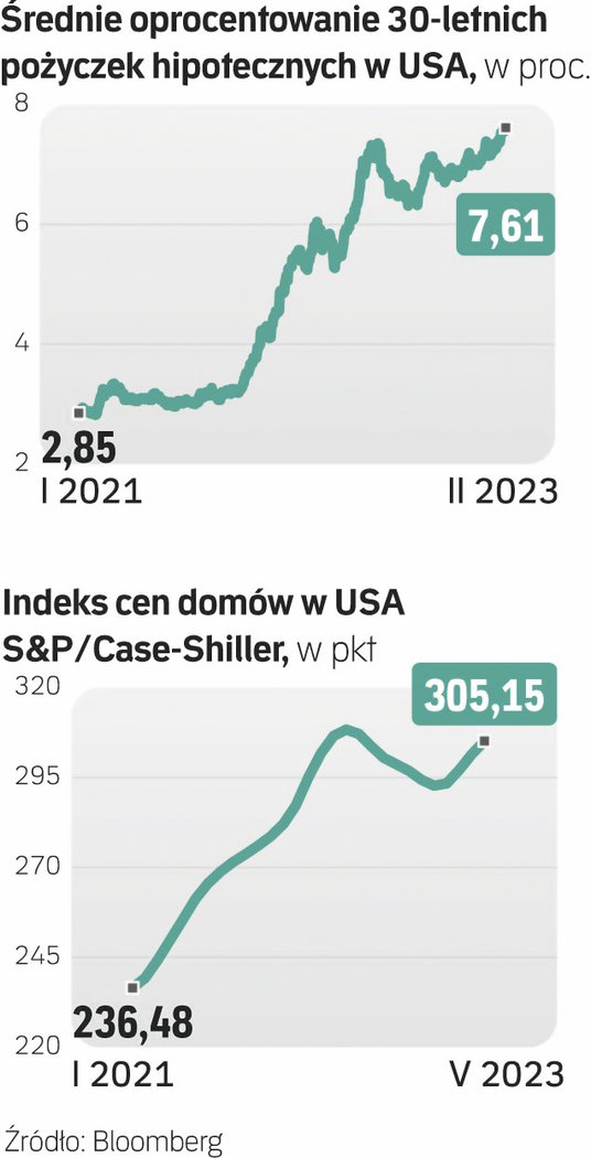 Pod jakimi względami sytuacja na rynku jest gorsza, niż była w 2006 r.? W lipcu 2006 r. mediana cen domów w USA wynosiła 230,5 tys. dol., przy medianie średnich rocznych dochodów Amerykanów wynoszącej prawie 49 tys. dol. W czerwcu 2023 r. mediana cen domów wynosiła natomiast 372 tys. dol., a mediana średnich rocznych dochodów – nieco ponad 76 tys. dol. Średnie oprocentowanie pożyczek hipotecznych wynosiło w lipcu 2006 r. 6,8 proc., a w czerwcu 2023 r. – 6,7 proc. O ile w lipcu 2006 r. przeciętny Amerykanin przeznaczał 42 proc. swojego rocznego dochodu na spłacanie rat pożyczek hipotecznych, o tyle w czerwcu 2023 r. ten cel pochłaniał 43,2 proc. jego dochodu. Dane o dostępności cenowej nieruchomości za lipiec i sierpień prawdopodobnie będą jeszcze gorsze, gdyż średnie oprocentowanie 30-letnich kredytów hipotecznych w USA wzrosło w ostatnich miesiącach. W tym tygodniu przekroczyło ono 7,6 proc. i stało się najwyższe od września 2000 r.