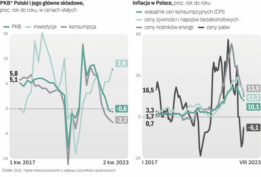 Takie oczekiwania mają trzy przyczyny. Po pierwsze, jak tłumaczą analitycy z ING BSK, we wrześniu inflacja już niemal na pewno będzie jednocyfrowa, a w całej II połowie br. może być niższa, niż wskazywały lipcowe prognozy NBP. Co więcej, Rada może argumentować, że warunek spadku inflacji poniżej 10 proc. w sierpniu faktycznie został spełniony. – RPP z dużą dozą pewności w inflacji dwucyfrowej zobaczy jednocyfrową – oceniają ekonomiści z mBanku, wskazując na ustawę dotyczącą dodatkowej obniżki (o 5 proc.) cen energii dla gospodarstw domowych, która zmienia ceny wstecz. Z ich wyliczeń wynika, że gdyby GUS tę zmianę już uwzględnił, to inflacja w sierpniu wyniosłaby 9,9 proc. Jest wprawdzie mało prawdopodobne, że ustawa wejdzie w życie na tyle szybko, aby zmienić wrześniowe dane, ale RPP o jej istnieniu wie już teraz.