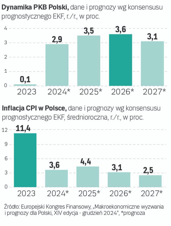Mimo wszystko przyszły rok ma być dla polskiej gospodarki lepszy niż 2024 r., między innymi dzięki ożywieniu w inwestycjach po uruchomieniu liznych projektów współfinansowanych z KPO i nowego budżetu UE. – Pieniądz unijny będzie nam ratował sytuację w 2025 r., natomiast cały czas punktem troski jest sytuacja w sektorze prywatnym. Tam inwestycje są poniżej potrzeb wynikających np. z sytuacji demograficznej – wskazuje Mrowiec.