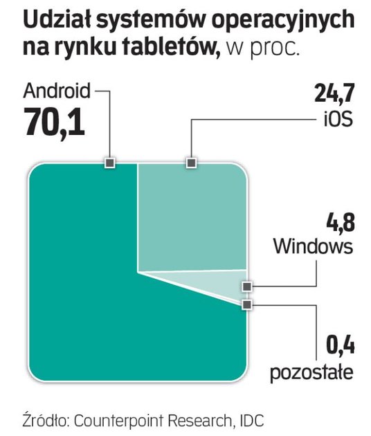 Jak tłumaczy Ishan Dutt, analityk Canalys, pandemia zwiększyła konkurencję o dostęp do wspólnego ekranu w gospodarstwach domowych, a tablety pomagały rozwiązać ten problem, umożliwiając każdemu członkowi rodziny posiadanie własnego urządzenia. Jednak ów efekt się skończył, a rynek nasycił. Jak wynika z najnowszych danych IDC, dostawy tabletów w II kwartale br. spadły po raz pierwszy od początku epidemii koronawirusa. W całym regionie EMEA (Europa, Bliski Wschód, Afryka) sprzedano 11,8 mln szt. tych urządzeń, czyli o prawie 2 proc. mniej niż rok wcześniej. O ile uznane marki w tej branży dalej notują wzrost popytu (Lenovo o 58 proc., a Apple o 17 proc.), o tyle mniej znani producenci zanotowali ostre tąpnięcie (spadki sięgnęły ponad 46 proc.).