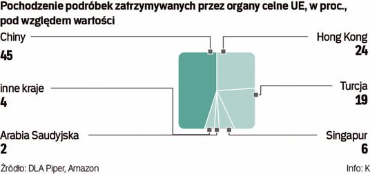 Z najnowszych danych Krajowej Administracji Skarbowej (KAS) wynika, że – mimo najniższej od 2018 r. liczby interwencji polskich organów celnych (spadek z 1272 do 777 w 2021 r.) – wykryto najwyższą od czterech lat liczbę podrabianych produktów. W sumie w ub.r. do kraju wjechało ponad 2,5 mln takich towarów, czyli o 4 proc. więcej niż rok wcześniej i dwie trzecie więcej niż w 2018 r. Według raportu DLA Piper i Amazona, który „Rzeczpospolita” publikuje jako pierwsza, wartość przemytu to 203 mln zł, aż 3,5-krotnie więcej niż rok wcześniej.