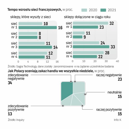 Z danych zebranych przez firmę Sagra Technology na podstawie analizy ponad 220 tys. punktów sprzedaży detalicznej w Polsce widać, że efektem zakazu jest przyspieszenie znikania hipermarketów, w których często robiono zakupy właśnie w weekend. O ile w 2018 r. spadek ich liczby wynosił 1 proc., o tyle w 2020 ubyło kolejne 5 proc., natomiast w ciągu 2021 r. z mapy handlowej Polski zniknął co ósmy hipermarket – aż 12 proc.