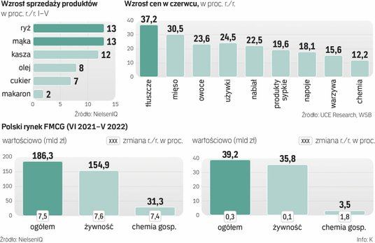 – W przypadku produktów sypkich, pierwszej potrzeby widać tendencję Polaków do zaopatrywania się w produkty na zapas. Takie kategorie, jak kasza, ryż, cukier oraz olej, w okresie od stycznia do maja bieżącego roku cieszyły się jedno- lub dwucyfrowymi wzrostami sprzedaży zarówno wolumenowej, jak i w opakowaniach w porównaniu do analogicznego okresu z roku poprzedniego – mówi Magdalena Mucha z firmy NilsenIQ, która zebrała dane specjalnie dla „Rzeczpospolitej”.