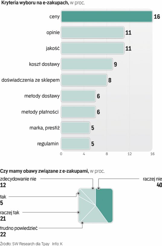 Z badania SW Research dla operatora Tpay wynika, że wybierając sklep, Polacy znowu zwracają największą uwagę na cenę. To kluczowe kryterium wyboru dla 16 proc. ankietowanych, po 11 proc. wymieniło ważność takich elementów i opinie innych internautów oraz jakość.