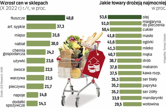 Rzadkością nie są już zwyżki cen o ponad 30 proc. – tak drożeje nabiał czy mięso. Rekordzistami są wciąż produkty tłuszczowe, z olejem na czele. Cukier za to jest już jedynie 50 proc. droższy niż przed rokiem, co jest odmianą po miesiącach letnich, gdy drożał nawet o 100 proc.