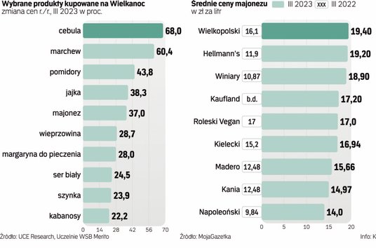 Ceny rosną rekordowo już od wielu miesięcy, ale przed świętami w związku ze zwiększonymi wydatkami, są analizowane szczególnie mocno. W tym roku wielkanocny budżet mocno pójdzie w górę, skoro najpopularniejsze z kupowanych w tym okresie produktów zdrożały nawet 60 proc. – wynika z danych przygotowanych specjalnie dla „Rzeczpospolitej” przez UCE Research i Uczelnie WSB Merito (dawniej Wyższe Szkoły Bankowe). Dane z cyklicznego raportu „Indeks cen w sklepach detalicznych” powstały na podstawie analizy niemal 90 tys. cen detalicznych z ponad 37 tys. sklepów.