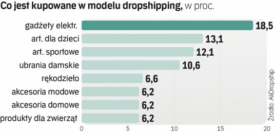 Dropshipping to sprzedawanie towaru, którego fizycznie nie ma, ma go hurtownik w magazynie. Kiedy klient kupi produkty, informacje o transakcji wraz z danymi wysyłkowymi otrzyma partner dropshippingowy. Sklep nie musi ponosić kosztów wynajęcia magazynu, może mieć więcej towarów w ofercie, redukuje też koszty zatrudnienia. Z raportu Business Research Company wynika, że rynek będzie rósł średnio o 30,6 proc. r./r., by w 2027 r. osiągnąć 724 mld dol.
