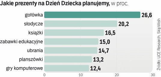 1 czerwca to stały punkt w kalendarzu sieci handlowych, ponieważ z tej okazji zawsze planowane są przez Polaków dodatkowe wydatki. Z badania UCE Research dla Grupy SkipWish wynika, że 21,9 proc. Polaków chce z tej okazji wydać 50–100 zł, a 26,6 proc. planuje zamiast prezentu dać po prostu gotówkę.