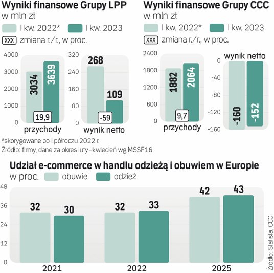 Spowolnienie w handlu odzieżą i obuwiem przez internet trwa – wskazują najnowsze dane największych polskich firm specjalizujących się w obrocie tym asortymentem: LPP i CCC.