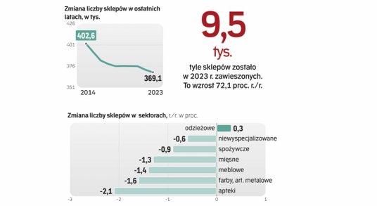 Na koniec 2023 r. liczba sklepów w Polsce spadła poniżej 370 tys., co oznacza, że w rok skurczyła się o ponad 3 tys. – wynika z najnowszych danych wywiadowni Dun & Bradstreet. To jednak nie jest pełen obraz branży, kolejne 10 tys. działalności gospodarczych zostało bowiem w tym okresie zawieszonych.