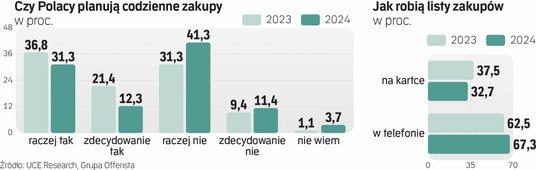 Jak zwracają uwagę analitycy z UCE Research, wśród tworzących listę 32,7 proc. robi to na kartce papieru, podczas gdy rok temu było to 37,5 proc. Listę w smartfonie lub na specjalnych aplikacjach przygotowuje 67,3 proc. Poprzednio wynik wynosił 62,5 proc.