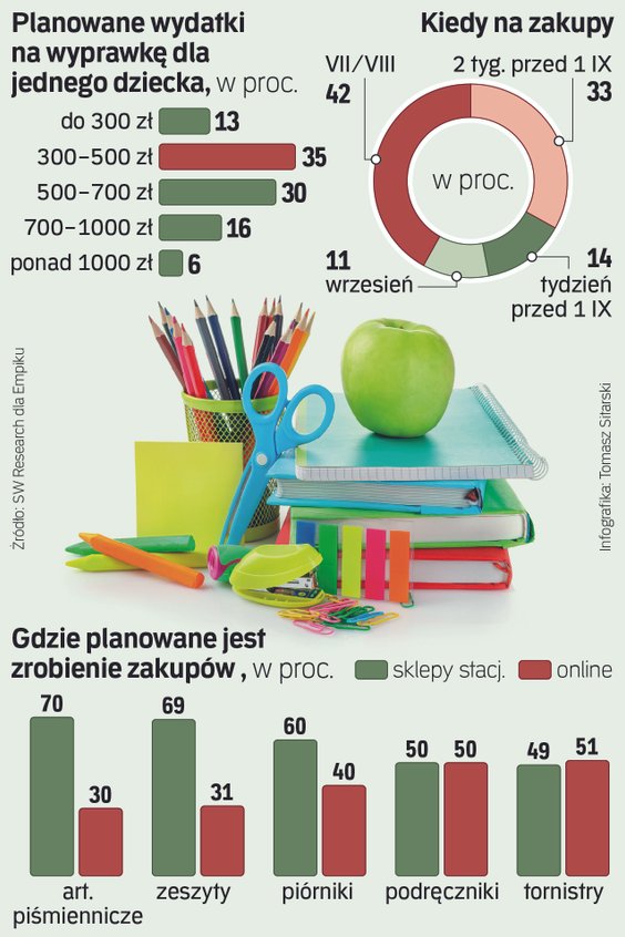 35 proc. wyda 300–500 zł, a 30 proc. nawet do 700 zł na dziecko. Co piąty wyda około 1 tys. zł lub nawet więcej, co pokazuje, jak poważne wydatki dokonywane są w tym czasie.
