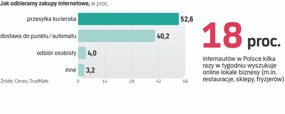 Coraz chętniej kupujemy online, ale w pobliskich sklepach. Ten tzw. lokalny e-commerce to nowy, ale szybko rosnący trend. Najnowsze badania, których wyniki „Rzeczpospolita” publikuje jako pierwsza, pokazują, że takie rozwiązanie to oszczędność czasu i kosztów – nie czekamy bowiem na dostawę „pod drzwi” i nie płacimy za kuriera. Aż 70 proc. internautów, którzy wybierają okoliczne biznesy, kieruje się właśnie ceną – podaje TrustMate w swoim raporcie.
