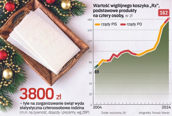 W badaniu cenowym wigilijnego koszyka „Rzeczpospolitej”, przygotowywanym już od kilkunastu lat, bierzemy pod uwagę ceny tylko podstawowych produktów na tę specjalną kolację dla czteroosobowej rodziny. Dania trzeba przygotować samodzielnie, nie uwzględniamy półproduktów czy dań gotowych, które znacząco ułatwiają życie, ale też podnoszą ostateczny koszt.