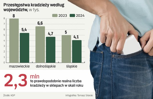 – Inflacja rośnie wolniej, płace przyspieszyły, więc nie ma tak silnej motywacji do tego, by łamać prawo w celu zdobycia jakiegoś potrzebnego produktu – zauważa Andrzej Faliński, prezes Forum Dialogu Gospodarczego. – Sklepy mają wciąż problem z pracownikami, do tego ich pensje rosną, stąd chętniej inwestują w elektroniczne systemy zabezpieczeń. Ponieważ wielu przypadków kradzieży i tak nikt nie zgłasza, szanse na rozwiązanie takich spraw są znikome – dodaje.