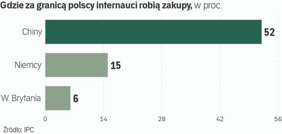 Co ciekawe, choć na zagranicznych platformach kupujemy z różnych kierunków, w tym m.in. z Niemiec (15 proc. transgranicznych zakupów) czy Wielkiej Brytanii (6 proc.), to serca Polaków całkowicie skradli sprzedawcy z Chin. Dostawy z tego kraju stanowią aż 52 proc. naszych „zagranicznych” e-zakupów.