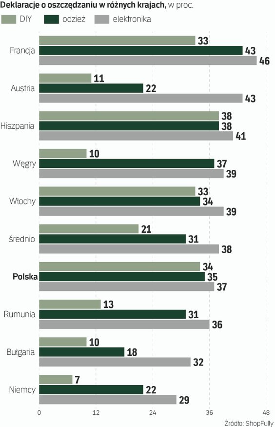 Ograniczać wydatków konsumpcyjnych nie ma zamiaru 19 proc. badanych konsumentów w Polsce – wynika z badania platformy Shopfully, którego wyniki „Rzeczpospolita” poznała pierwsza. Średnia dla grupy badanych państw to 23 proc. – najwięcej przeciwników zaciskania pasa jest w Austrii, bo aż 32 proc., a w Niemczech – 28 proc. Z kolei taką postawę przyjmuje tylko 10 proc. Bułgarów czy 17 proc. Włochów.