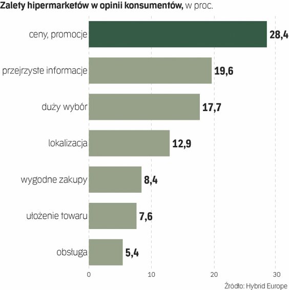 – Hipermarkety wciąż postrzegane są jako miejsca oferujące przejrzystą politykę informacyjną, szeroki wybór, wysoką jakość produktów oraz korzystną lokalizację. Mimo to, w pierwszym z tych aspektów zostały już wyprzedzone przez dyskonty, co stanowi interesujący sygnał dla rynku – mówi Michał Rosiak z Hybrid Europe. – Dyskonty wyprzedzają hipermarkety w postrzeganiu ich jako bardziej przejrzystych informacyjnie, mimo że to hipermarkety historycznie wprowadzały konsumentów w świat promocji i ofert. Intensywne kampanie reklamowe największych sieci dyskontowych, w tym działania w duchu "wojny cenowej", wyraźnie ukształtowały percepcję konsumentów – i to często silniej niż rzeczywista oferta – dodaje.
