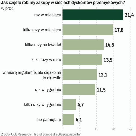 Ogółem jedynie 37,8 proc. badanych jednoznacznie zaprzeczyło kupowaniu w sieciach typu Pepco, Action, Dealz, TEDi lub KiK. 57,1 proc. robi to, a wśród nich aż ponad 55 proc. chodzi na takie zakupy przynajmniej raz w miesiącu – wynika z badania UCE Research i Hybrid Europe specjalnie dla „Rzeczpospolitej” na próbie ponad 1 tys. Polaków.