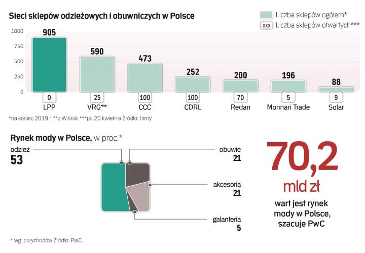 Na podobny ruch co CCC zdecydowało się CDRL, właściciel marki odzieży dziecięcej Coccodrillo. Spółka otworzyła ponad 100 butików. W jej wypadku to prawie połowa wszystkich w Polsce. Kolejnych kilkadziesiąt ruszyć ma po „majówce". Firma przywraca też funkcjonowanie salonów na rynkach zagranicznych. W tym miesiącu chce wznowić handel w 16 butikach w Czechach i w 2 na Słowacji oraz w wybranych sklepach w Niemczech.