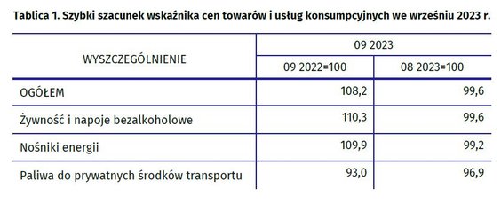Inflacja we wrześniu spadła do 8,2 proc. rocznie z 10,1 proc. w sierpniu. W stosunku do poprzedni...