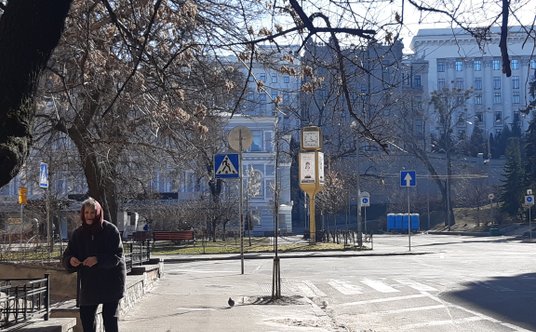 9:55. Trzy godziny po opublikowaniu przesłania przez Zełenskiego. Zbliżam się do budynku, przed którym się sfilmował. Przy skwerze wielu policjantów. Wkładam dłoń do kieszeni kurtki. Reakcja natychmiastowa. Szczęk broni. - Ręce do góry!
