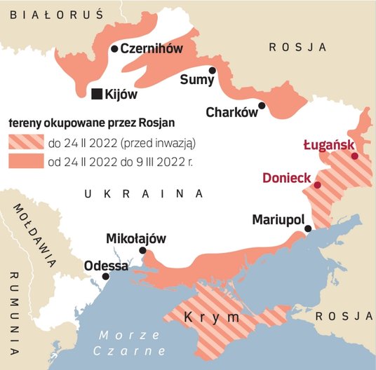 Na razie Moskwa nie osiągnęła żadnego z zakładanych celów: armia ukraińska nie została rozbita, rząd w Kijowie nie został obalony, nie zdobyto żadnego, znaczącego miasta. W dodatku na to wszystko wyznaczono prawdopodobnie jedynie trzy dni (na to wskazują zeznania jeńców, jak i wielkość zapasów u żołnierzy z czołowych oddziałów). Zamiast tego mija drugi tydzień wojny.