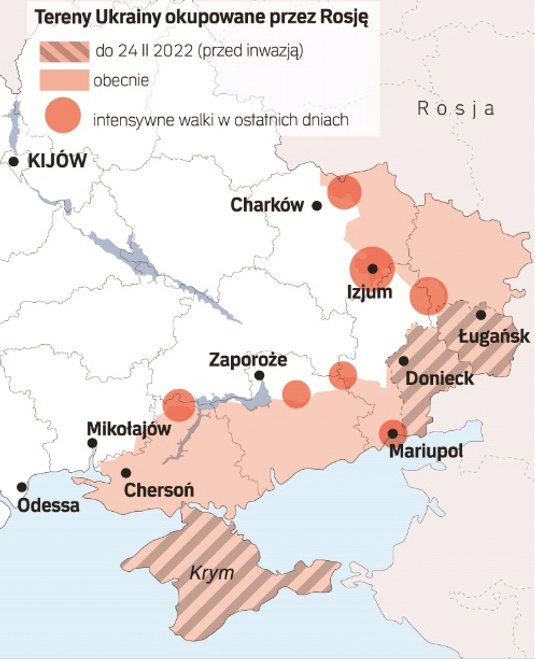 W ciągu ostatnich kilku dni Ukraińcy odrzucili Rosjan w okolicach Charkowa do 40 kilometrów. Ale nie osiągnęli jeszcze rosyjskiej granicy w punkcie najbliższym od metropolii, czyli 37 kilometrów od miasta. Z atakowanych wiosek rosyjscy żołnierze uciekali już po pierwszym ostrzale artyleryjskim, nie próbując nawet podejmować walki z Ukraińcami. Porzucali przy tym sprzęt i broń. Wokół Izjumu zaś rosyjska armia skupiła największe na całym froncie zgrupowanie swych sił. Ale w ciągu tzw. drugiej fazy operacji niewiele udało im się tutaj osiągnąć.