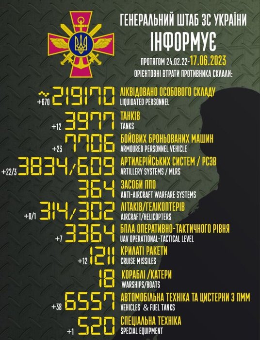 „Wróg nadal koncentruje swoje główne wysiłki na kierunkach Łymanu, Bachmutu, Awdijiwki i Marjinki, trwają ciężkie walki. W ciągu ostatniej doby doszło do 22 starć” – poinformował Sztab Generalny Sił Zbrojnych Ukrainy na swojej stronie na Facebooku.