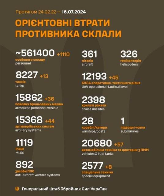 Rankiem 16 lipca wojska rosyjskie zaatakowały rynek w Chersoniu, powodując zniszczenia, ale nikt nie został ranny.